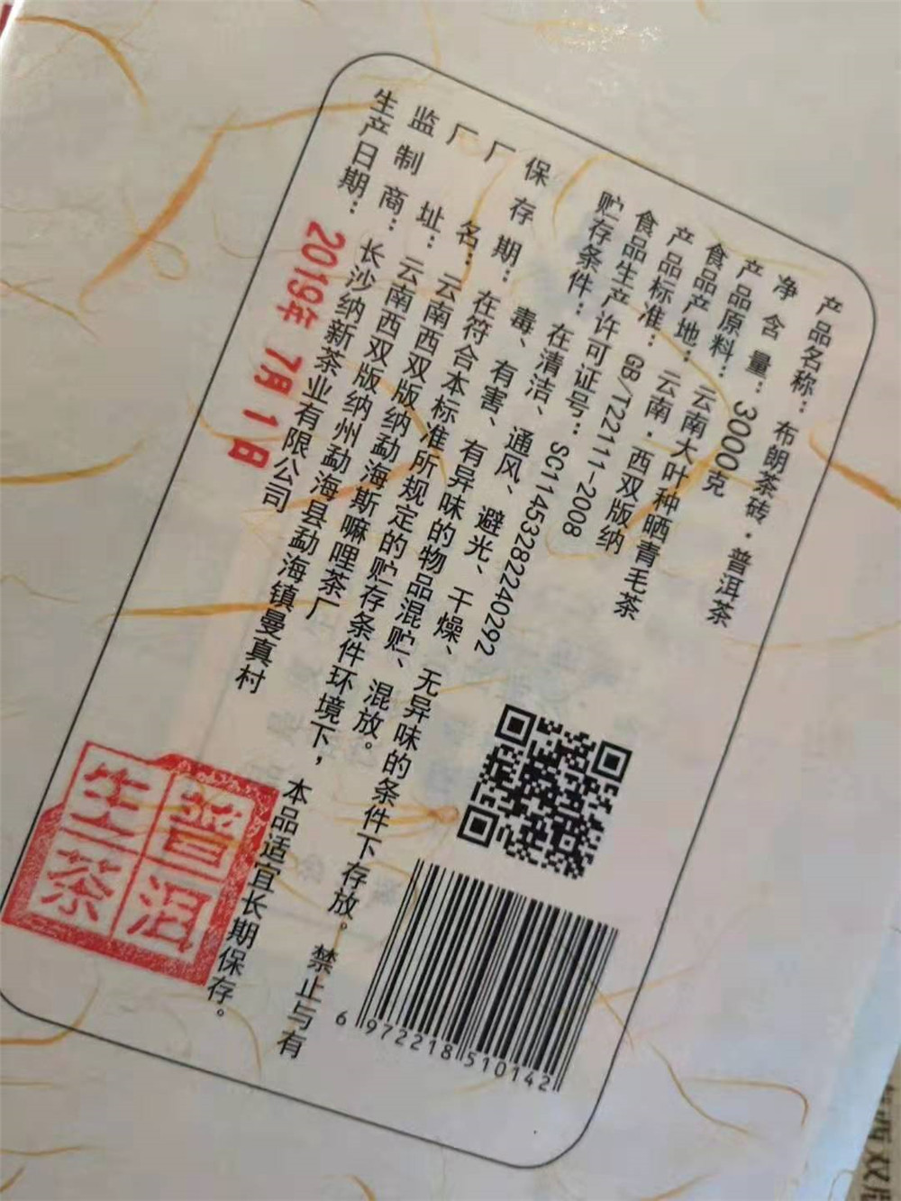 三层棉纸,一层笋叶,外挂吊牌,烫板烧字,匠心制作,藏茶佳品。