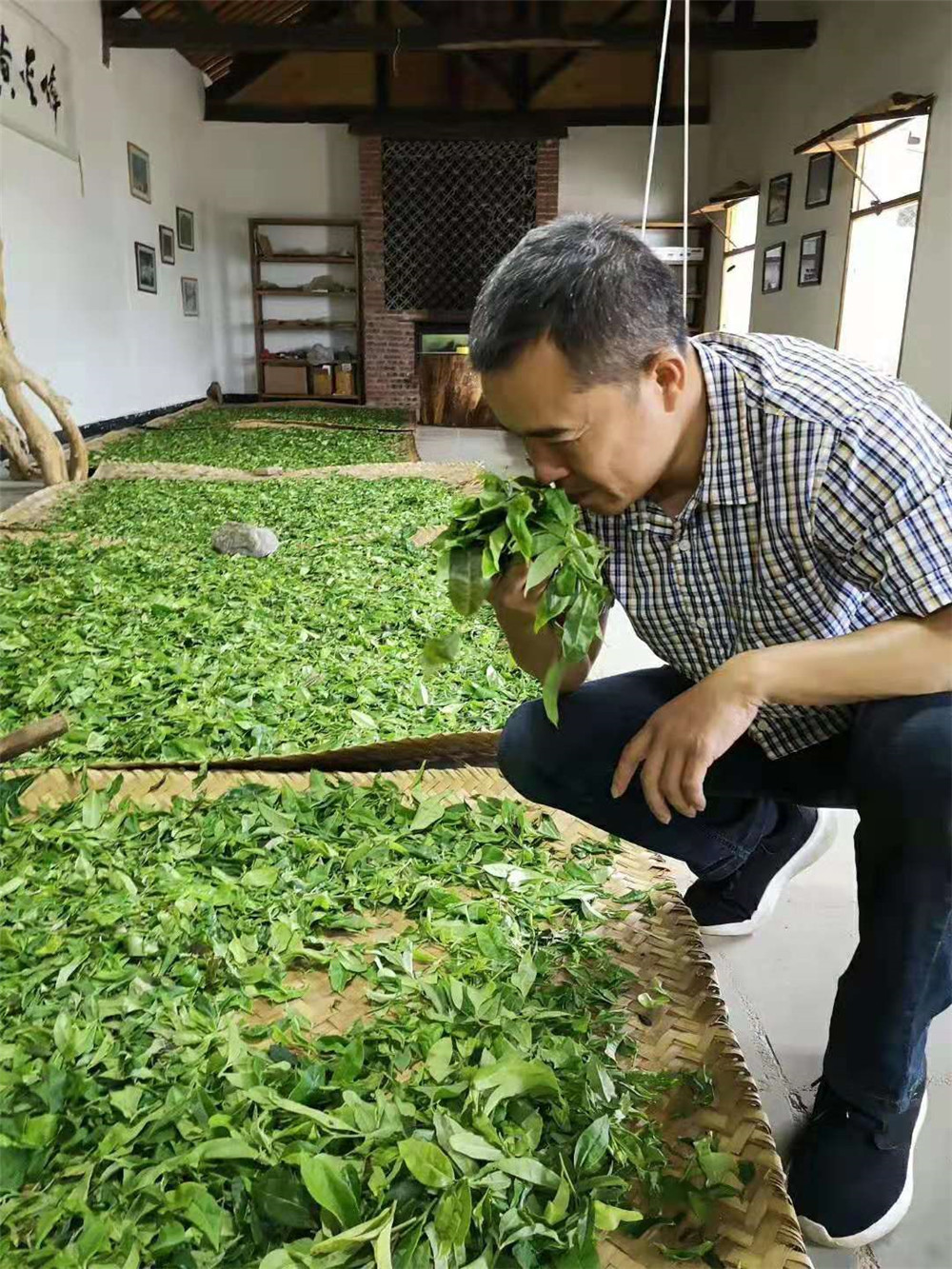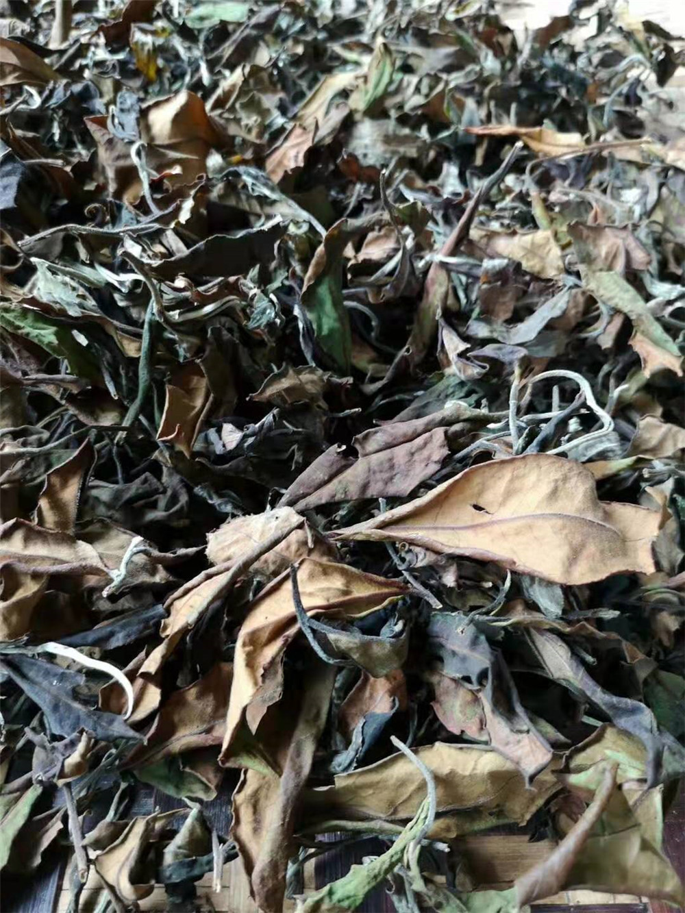 来到了南糯山半坡老寨纳新白茶的采摘制作基地,这是昨天采摘的鲜叶,才六十公斤左右,凉干后也才十公斤多点,量少呀。
