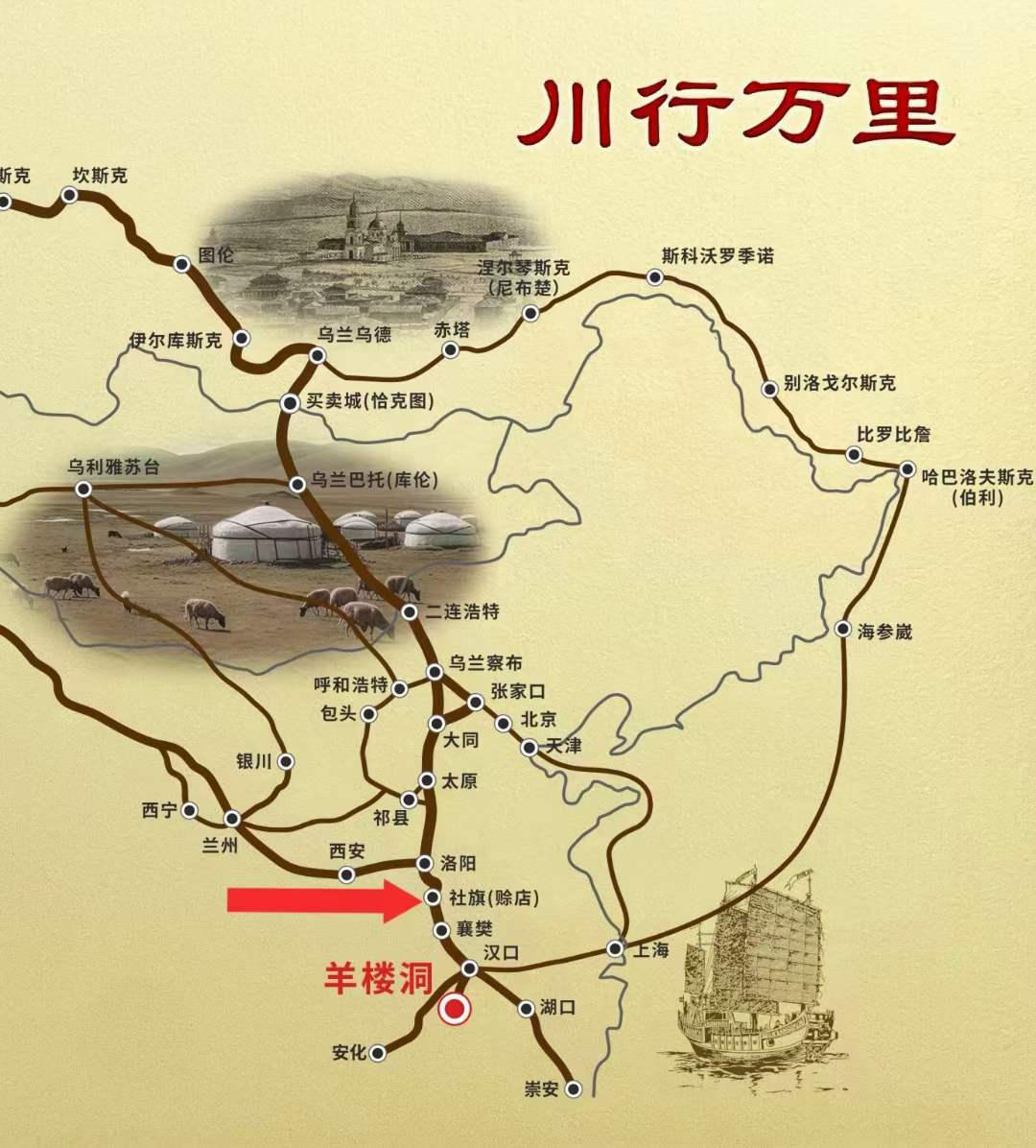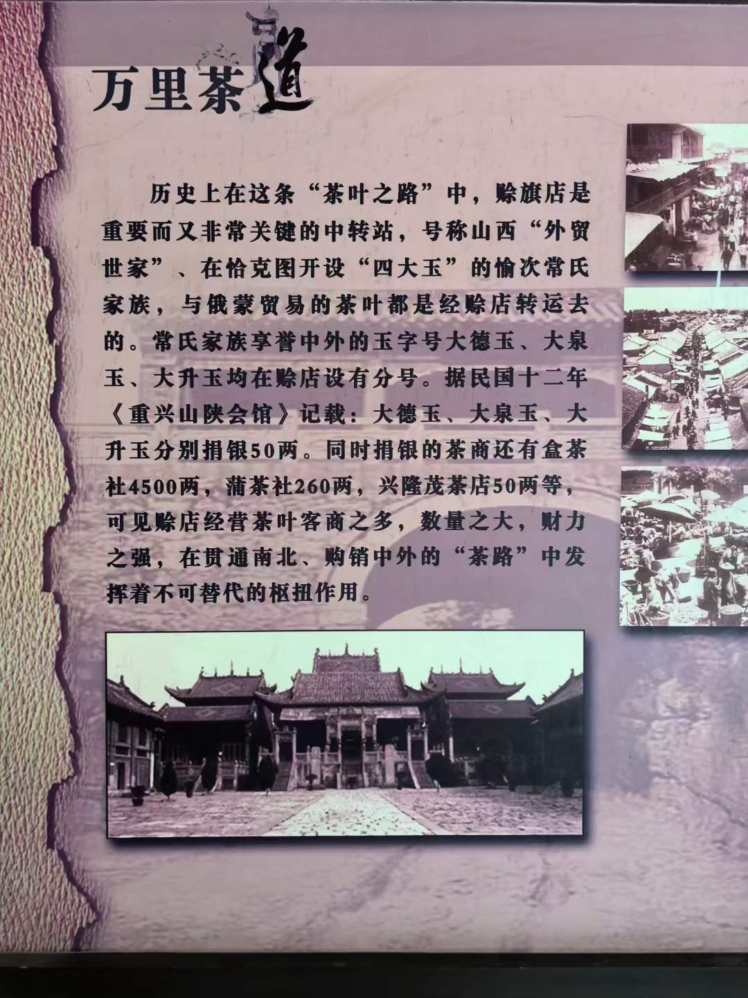 历史上在这条"茶叶之路"中,赊旗店是重要而又非常关键的中转站,号称山西"外贸世家"、在恰克图开设"四大玉"的愉次常氏家族,与俄蒙贸易的茶叶都是经赊店转运去的。常氏家族享誉中外的玉字号大德玉、大泉玉、大升玉均在赊店设有分号。
