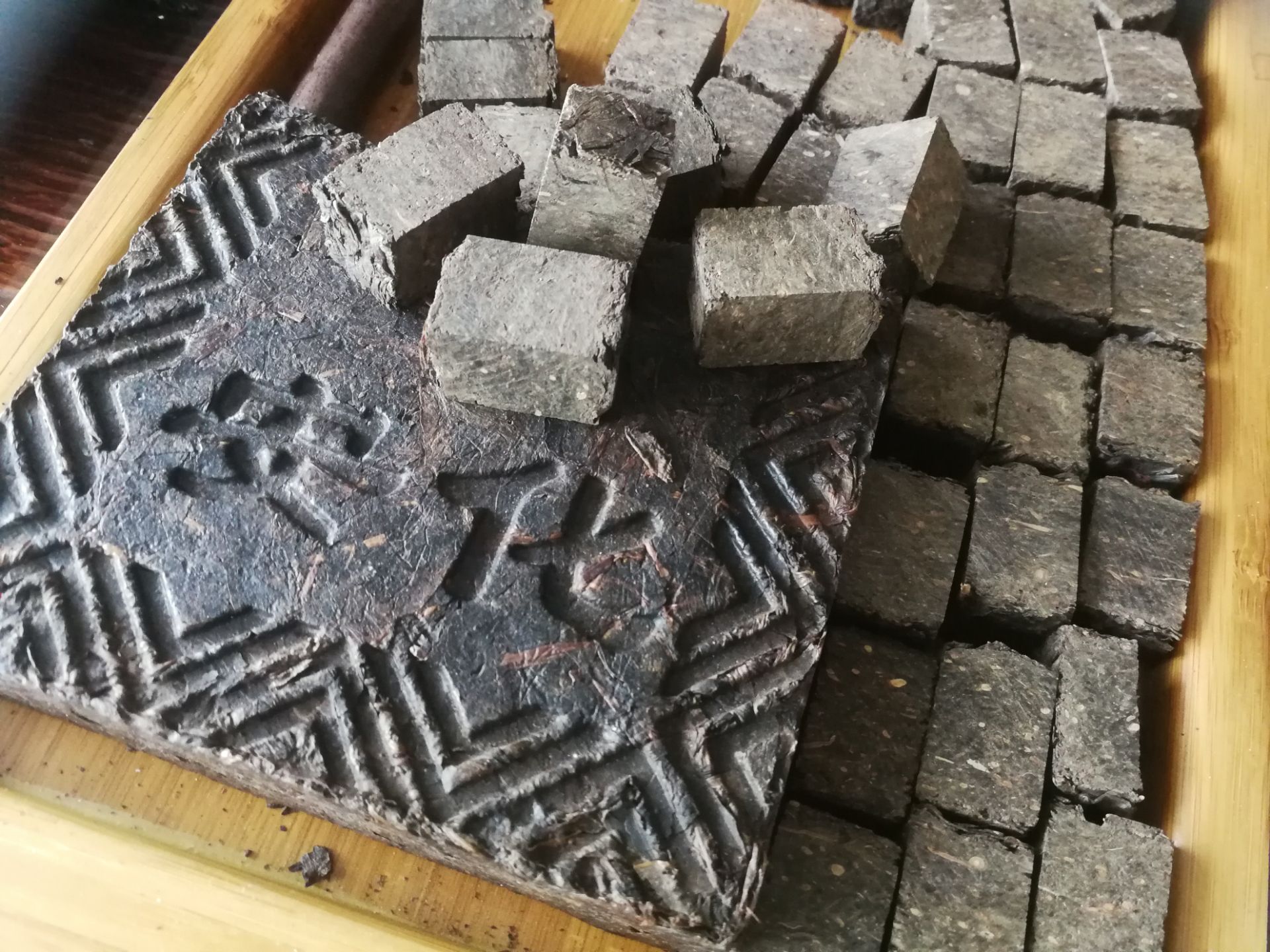 青砖:发酵茶(渥堆发酵)压制,类似于普洱茶熟茶饼(砖)。
